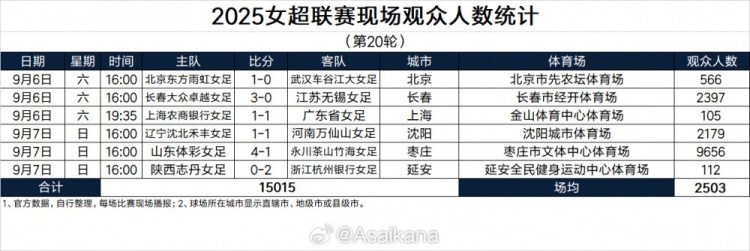 华体会娱乐平台-2025赛季女超联赛第二十轮现场观赛人数数据
