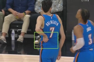 稍有不适!切特扣篮+盖帽后捂着腰部左侧 但继续坚持出战