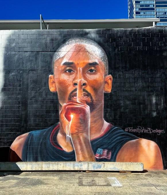 华体会官方网站首页-致敬经典,夏威夷一画家在涂鸦墙画出科比08奥运噤声庆祝造型