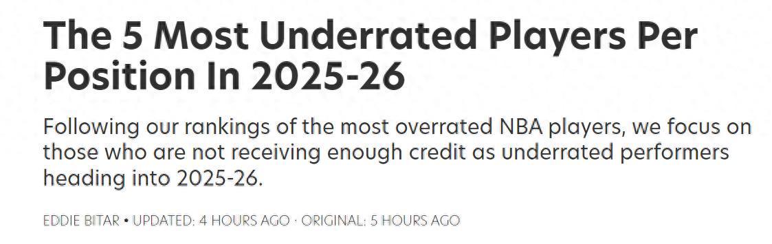 华体会正版游戏-最被低估球员评选!美媒公布各位置TOP5名单:湖人队3大弃将入选